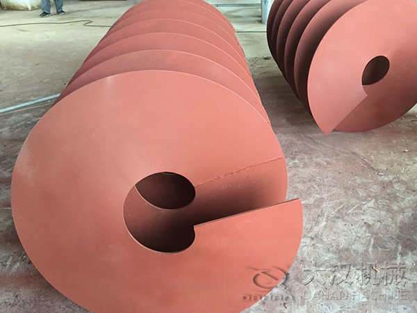 無(wú)軸螺旋輸送機(jī)又叫螺旋給料機(jī)。無(wú)軸螺旋輸送機(jī)在輸送原理上與一般螺旋輸送機(jī)基本相同:即如同一根旋轉(zhuǎn)的螺旋軸,帶動(dòng)一個(gè)螺母沿其軸向移動(dòng)一樣,無(wú)軸螺旋輸送機(jī)螺旋體相當(dāng)于螺旋軸,物料相當(dāng)于螺旋輸送機(jī)螺母,當(dāng)螺旋體連續(xù)旋轉(zhuǎn)時(shí)則物料也連續(xù)輸送。無(wú)軸螺旋輸送機(jī)螺旋體為較厚的帶狀葉片,通過(guò)無(wú)軸螺旋輸送機(jī)驅(qū)動(dòng)端驅(qū)動(dòng),中間無(wú)軸,螺旋體與機(jī)殼內(nèi)壁底部襯板接觸(滑動(dòng))。
